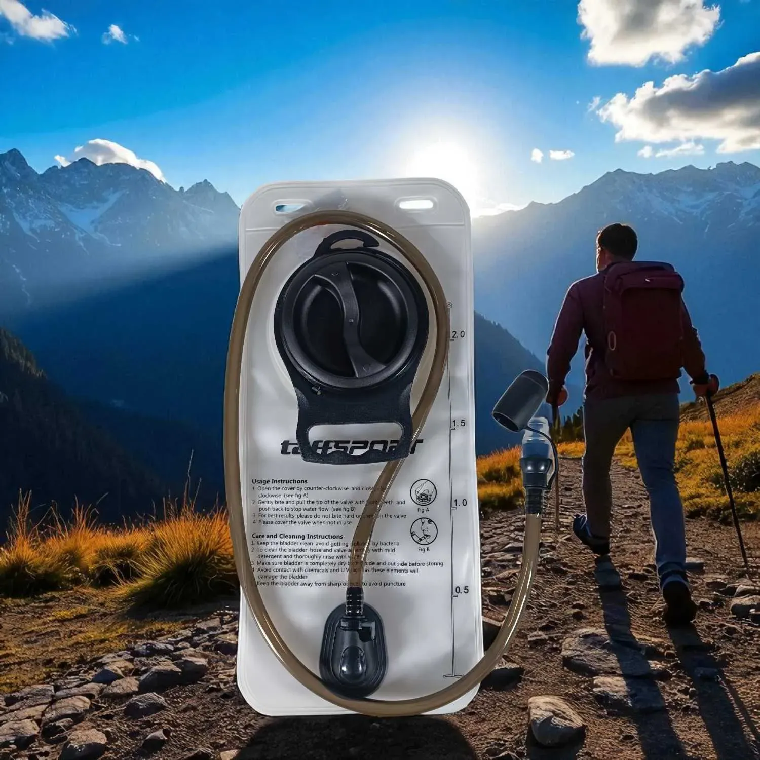 Kantong air minum berkapasitas 2 L ini terbuat dari material TPU food grade yang lembut, dilengkapi selang dan katup agar kamu dapat minum tanpa harus berhenti bergerak.